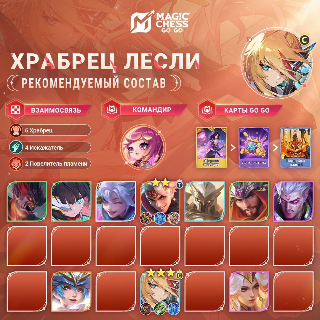 Поздняя игра: как только Лесли и герои переднего ряда достигнут высоких звездных уровней, быстро поднимитесь до ур. 9-10, чтобы найти дорогостоящих Фазоисказителей. Завершите свой состав 6 Храбрецами, 4 Фазоисказителями и 2 Претендентами.
