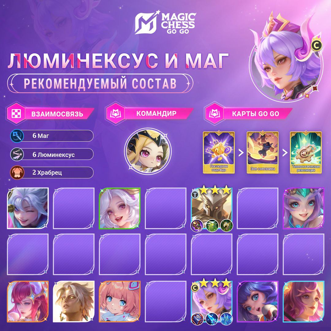 В поздней игре постарайтесь собрать состав из 6 Магов и 6 Люминексуса.