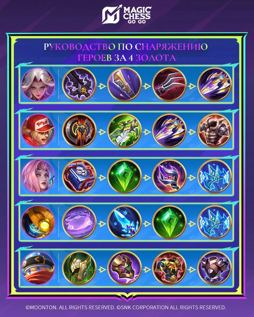 Главная » Magic Chess: Go Go » Гайды MCGGРуководство по снаряжению героев за 4 золота (5 сезон) На чтение 1 мин Просмотров 41 Опубликовано 05.04.2026 Рекомендованное снаряжение для героев за 4 золота (5 сезон) Magic Chess Go Go.
