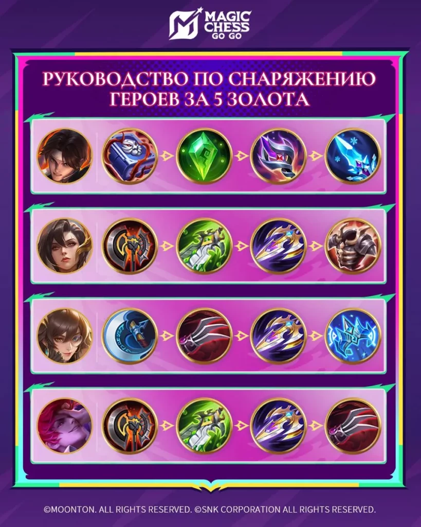 Главная » Magic Chess: Go Go » Гайды MCGGРуководство по снаряжению героев за 5 золота (5 сезон) На чтение 1 мин Просмотров 13 Опубликовано 02.04.2026 Рекомендованное снаряжение для героев за 5 золота (5 сезон) Magic Chess Go Go часть 2.