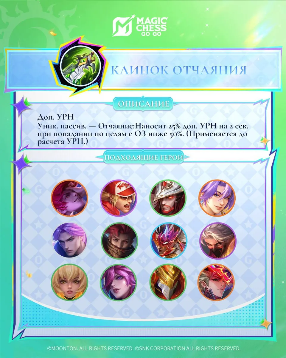 Главная » Magic Chess: Go Go » Гайды MCGGСнаряжению: Клинок отчаяния На чтение 1 мин Просмотров 18 Опубликовано 26.04.2026 Подсказки и хитрости по снаряжению игры Magic Chess Go Go: Клинок отчаянияОсвоили ли вы эффект этого снаряжения и используете ли его в своих матчах?