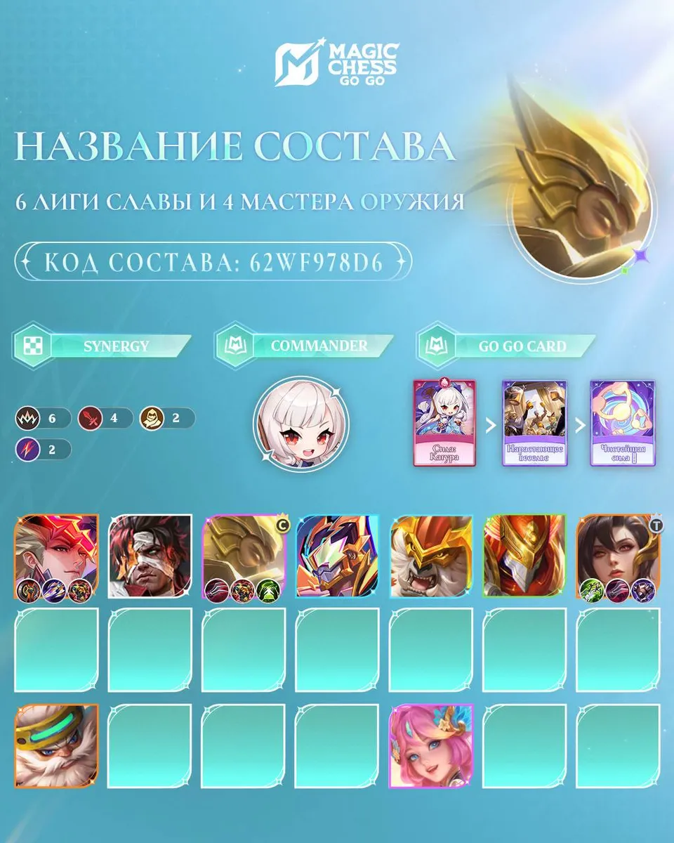 - Ранняя игра: активируйте 4 Лиги славы. Плавно переходите к средней игре с увеличенным щитом и гибридной АТК.