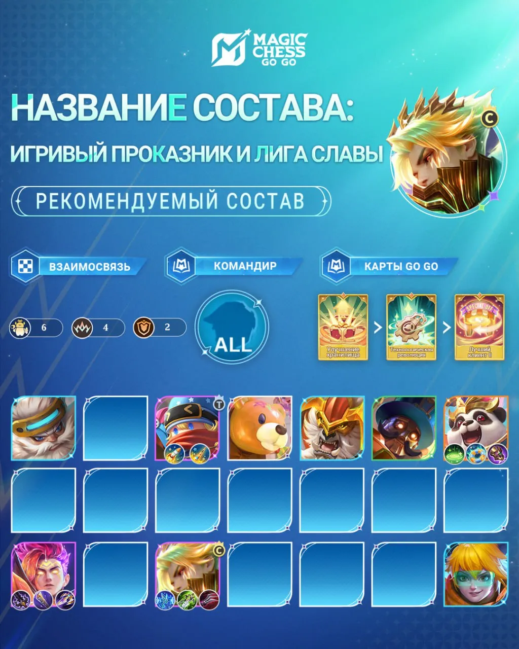 - Поздняя игра: перейдите к рекомендуемым сборкам и повысьте звезды всех героев за 4 золота до 3-зв., чтобы обеспечить победу.