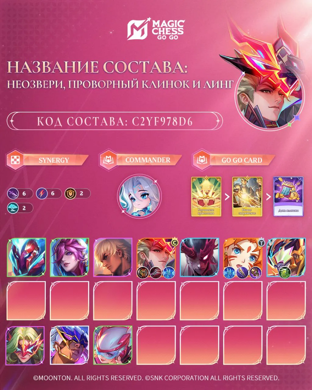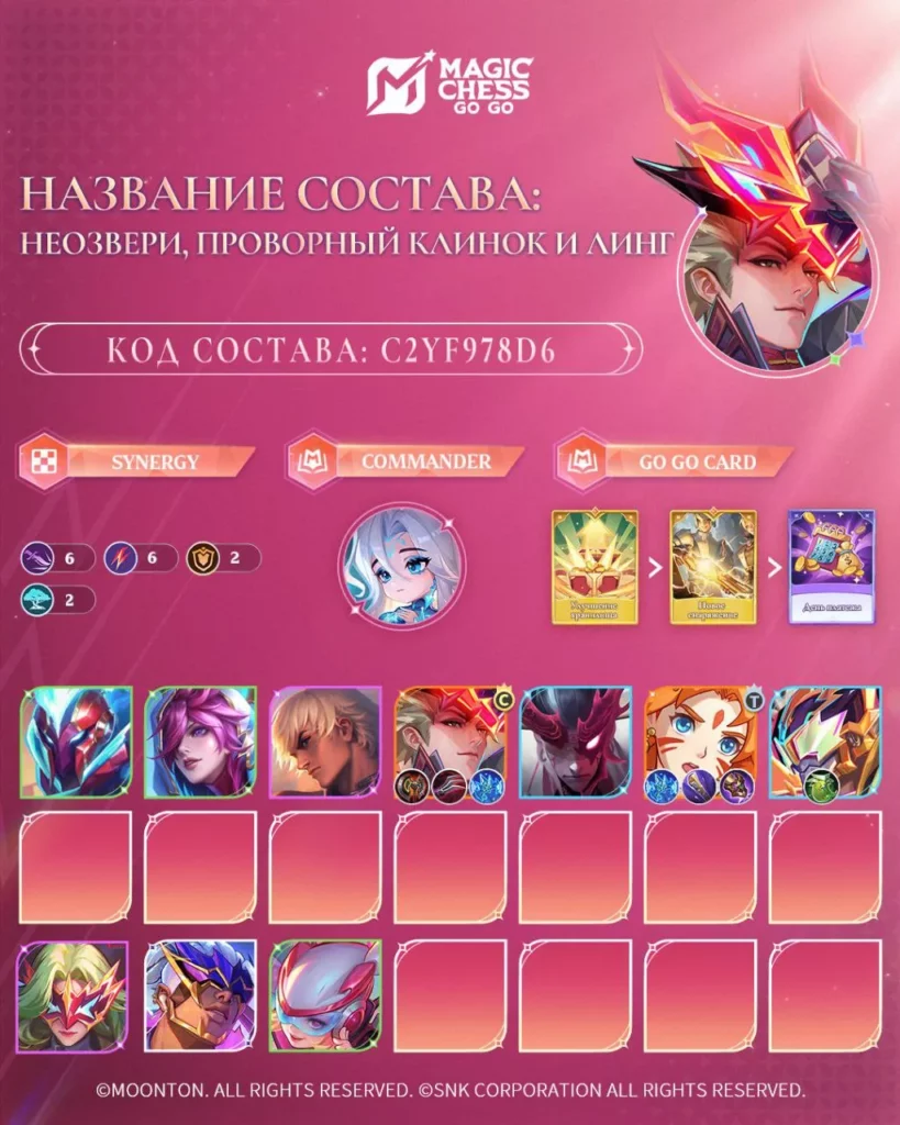 В ранней игре совершайте переход с помощью Неозверей + Стрелка/Мага. Отдайте приоритет Падальщику, если он доступен. Активируйте Неосундук при 40–45 ОЗ, чтобы забрать награды и стремитесь к ур. 9. Затем обновляйте магазин и отдавайте приоритет героям Проворного клинка (Линг, К’ и др.).
