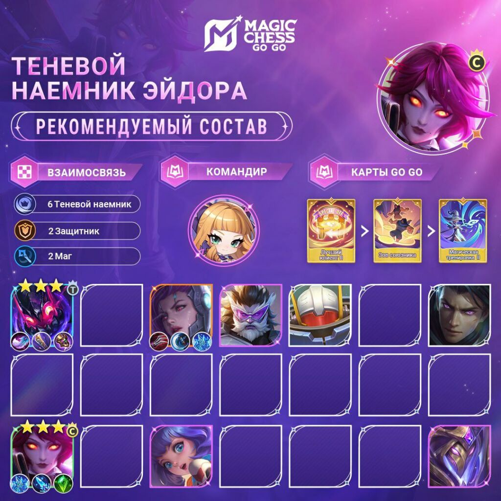 На ур. 5 поддерживайте 20 процентов, чтобы обновлять магазин для получения 3-зв. Эйдоры. Если вы рано получите много карт Алукарда, рассмотрите возможность собрать 3-зв. Алукарда. Затем накапливайте ресурсы, чтобы медленно достичь ур. 7 и собрать 3-зв. Глу. Этот состав отлично работает с картами Go Go, которые дают шансы на обновление магазина для получения большего количества героев с высоким звездным уровнем. Позже добавьте Магов или Бойцов для усиления состава.