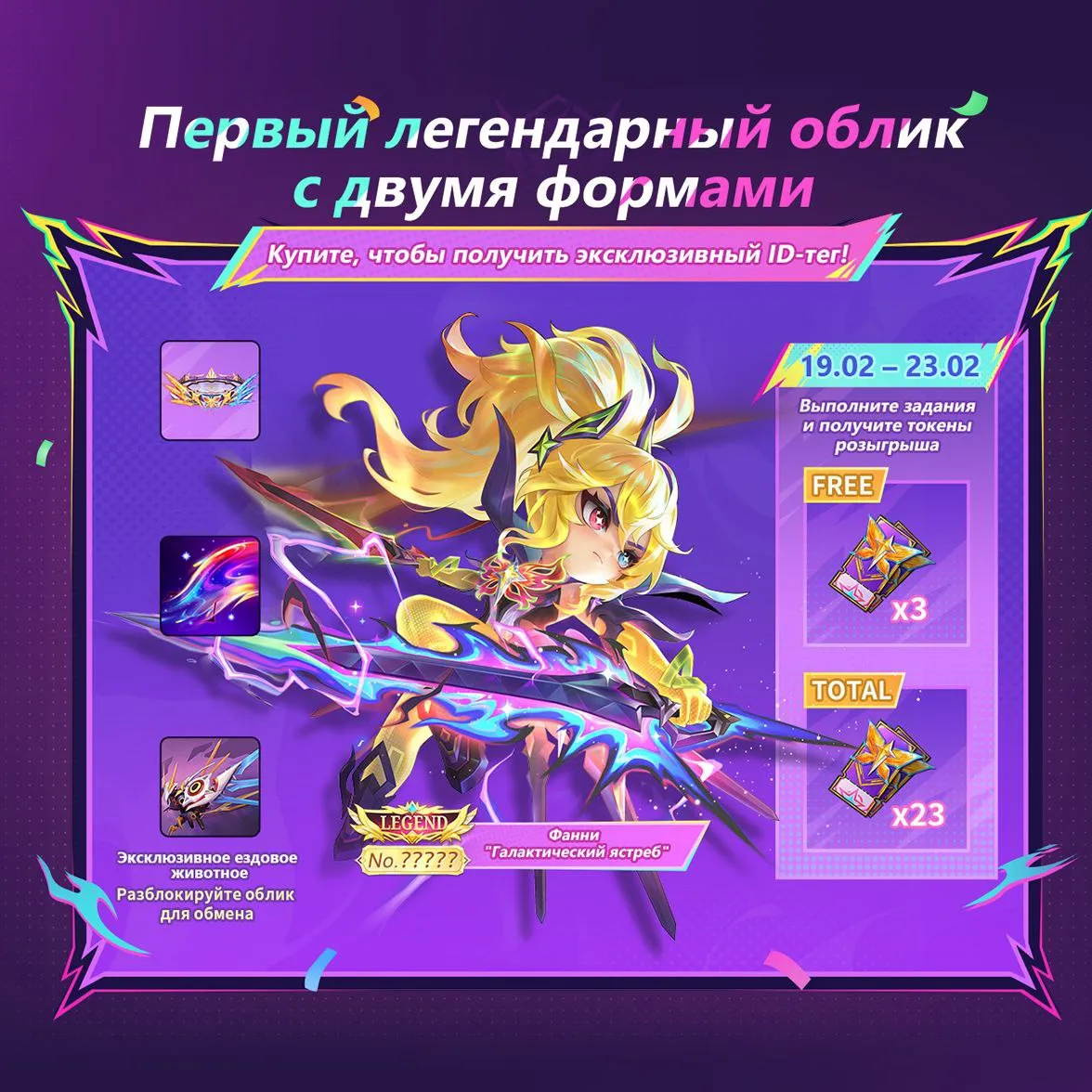 Первый легендарный облик с двойной формой в MCGG — Фанни «»Галактический ястреб»» выходит 10.02! Вас ждут эксклюзивные: ездовое животное, ID-тег и платформа!