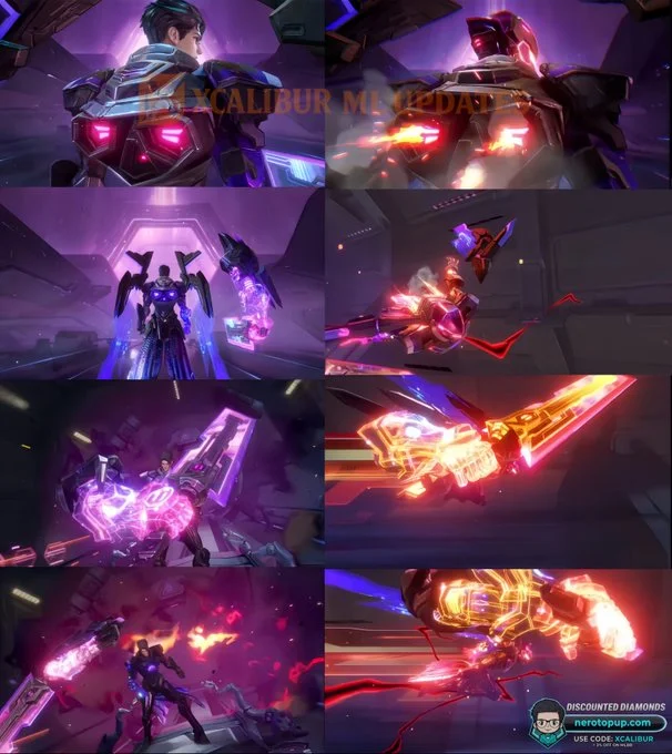 Xcalibur не остановился на одном изображении — он выложил полноценный коллаж с эффектами всех навыков. Первая способность теперь вызывает фиолетовые кристаллы и вихри, вторая — крылатые вспышки с гексагональными барьерами, а третья бьет огненными волнами с плазменными следами. Ультимейт, как мы видели, — чистый адреналин с мотоциклом и энергетическими взрывами. Видео-тизер «Reforge the Future» раскрывает закулисье: разработчики показывают концепт-арты, тестируют эффекты и подчеркивают, как новый скин усиливает геймплей. «Элементы вроде мотоцикла делают воина еще агрессивнее», — отмечают в ролике.