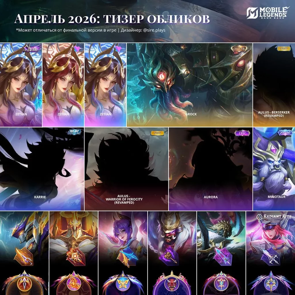 Тизер обликов Mobile Legends Bang Bang к выпуску Апрель 2026
