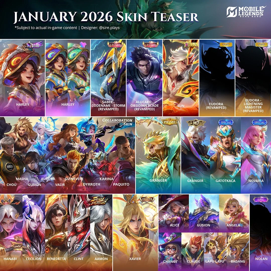 Друзья, новый год в Mobile Legends: Bang Bang обещает быть по-настоящему огненным! Команда разработчиков только что выкатила официальный тизер январского пула косметики на 2026 год, и это настоящий праздник для глаз. В соцсетях MLBB — @MobileLegendsOL и Facebook — появился стильный коллаж с силуэтами и названиями, который заставит ваше сердце биться чаще. Здесь собраны свежие новинки, крутые реворки старых хитов и эксклюзивные ивентовые образы.