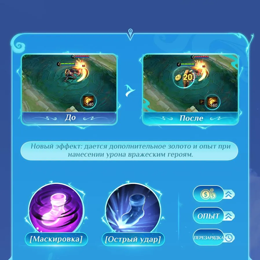В этом обновлении мы переработали механику получения дополнительного золота и опыта благословениями роума «Маскировка» и «Острый удар», чтобы они лучше подходили использующим их героям.